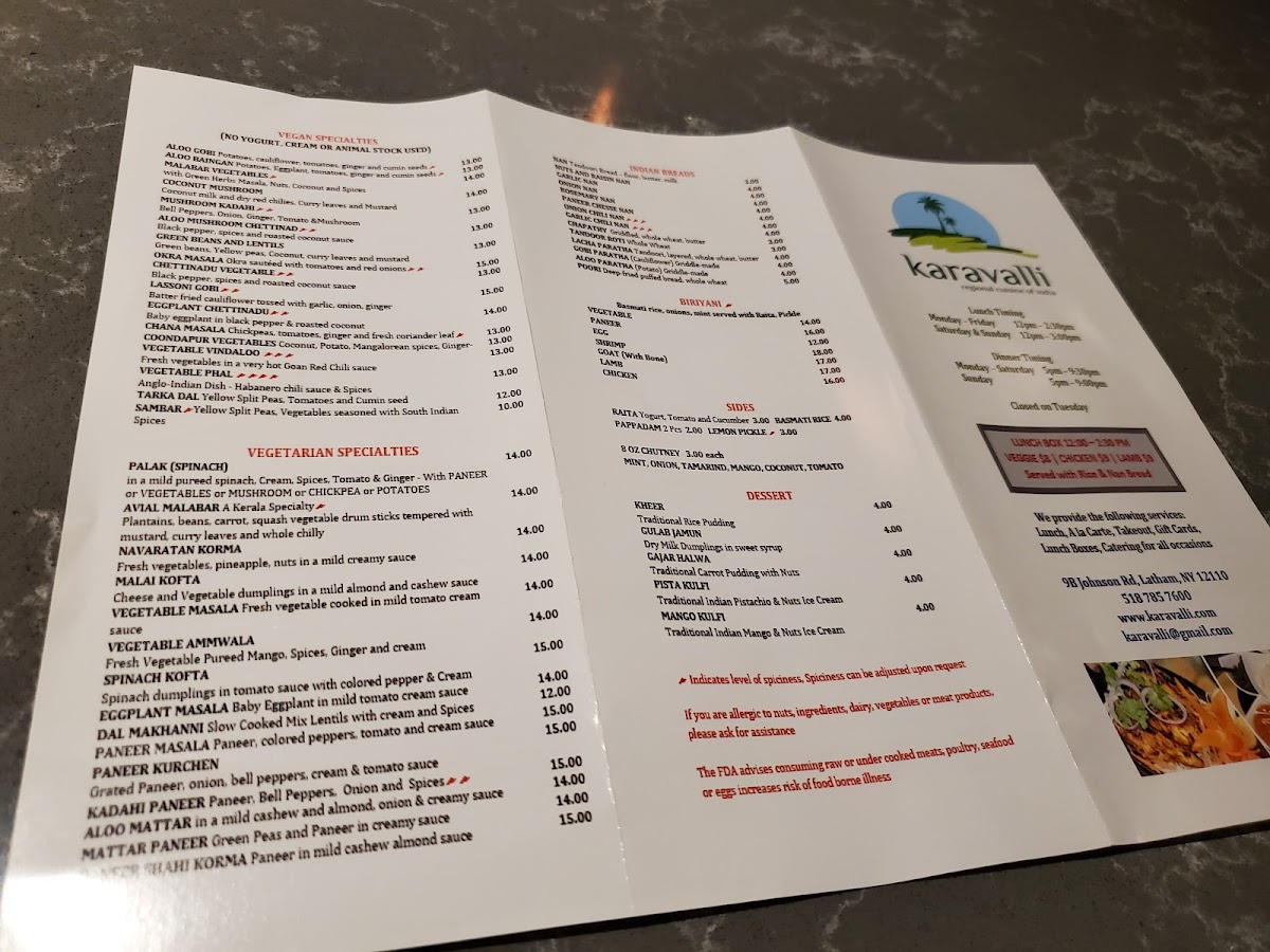 If you're craving authentic, mouthwatering Indian flavors, the Karavalli Latham Menu offers a delightful selection that will take your taste buds on a flavorful journey. Located at 9 Johnson Rd in Latham, NY, this charming spot brings a variety of traditional dishes that showcase the rich culinary heritage of South India. Whether you're in the mood for spicy curries, crispy dosas, or fragrant biryanis, the menu is crafted to cater to every craving. With a blend of aromatic spices and fresh ingredients, each dish is prepared with care, offering a perfect balance of bold flavors and comforting textures. From vegetarian to non-vegetarian options, there's something for everyone at Karavalli, making it a must-visit destination for food lovers.